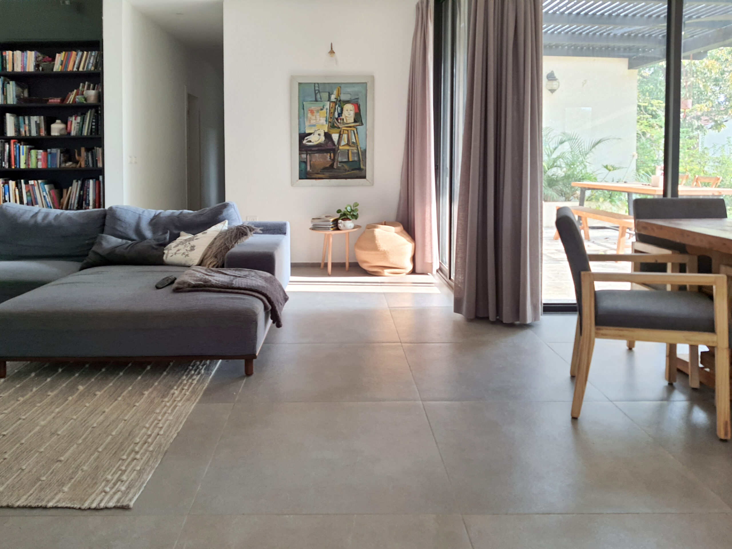בצמוד לשדות הקיבוץ ולשדרת פיקוסים, תוכנן בית שמחבר בין סגנונות שונים. את המבואה הרחבה מקרה קוביית בטון אשר משמשת לתצפית לשקיעות ולנוף השדות. הכניסה דרך דלת עץ שחורה רחבה למבואה פנימית מול קיר בטון. המבואה משמשת כיחידת מעבר בין הפנים לחוץ. כבר מהכניסה ניתן לראות את המרפסת התחומה, אליה גישה מהחלל הציבורי ומחדרי השינה. הבית עוטף את המרפסת והופך אותה לחלל שימושי כל ימות השנה. המטבח ופינת האוכל בעלי חלל כפול ומאפשרים קשר עם פינת המשפחה בעליית הגג. הסלון במרכז החלל הציבורי ובמרכז הבית כולו. בצידו אלמנט בטון צף שמשמש כפינת רביצה, שהופך לרצפת קמין ולמדרגות אשר מובילות לפינת יצירה. ספריה שחורה משמשת רקע לספה גדולה ומפנקת שצפה במרכז החלל. כל הבית תוכנן למקסם את התנועה בחלל על-ידי קישוריות מפתיעה בין החללים ויצרת עניין בכל פניה. החלום שלי, הבית שלי.